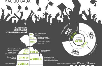 UZZIŅAI: Pārskats par studiju maksu, studējošo skaitu, kā arī sadalījumu starp tiem studentiem, kuri studē par valsts budžeta līdzekļiem un kuri par privātajiem līdzekļiem, ir pieejams šajā Dynamic University sagatavotajā infogrammā.